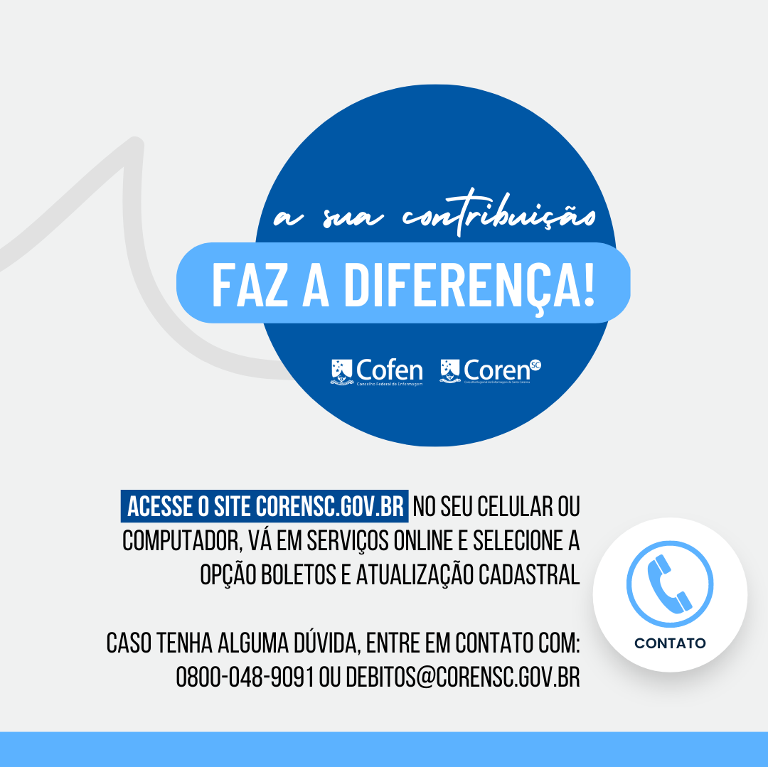 Nos casos em que o profissional opte por comparecer presencialmente para emissão do boleto da anuidade de 2023 ou para negociação de débitos anteriores, seja por ausência de acesso à internet, seja por qualquer outro motivo, o boleto e a negociação poderão ser emitidos presencialmente, por intermédio do Coren-SC.