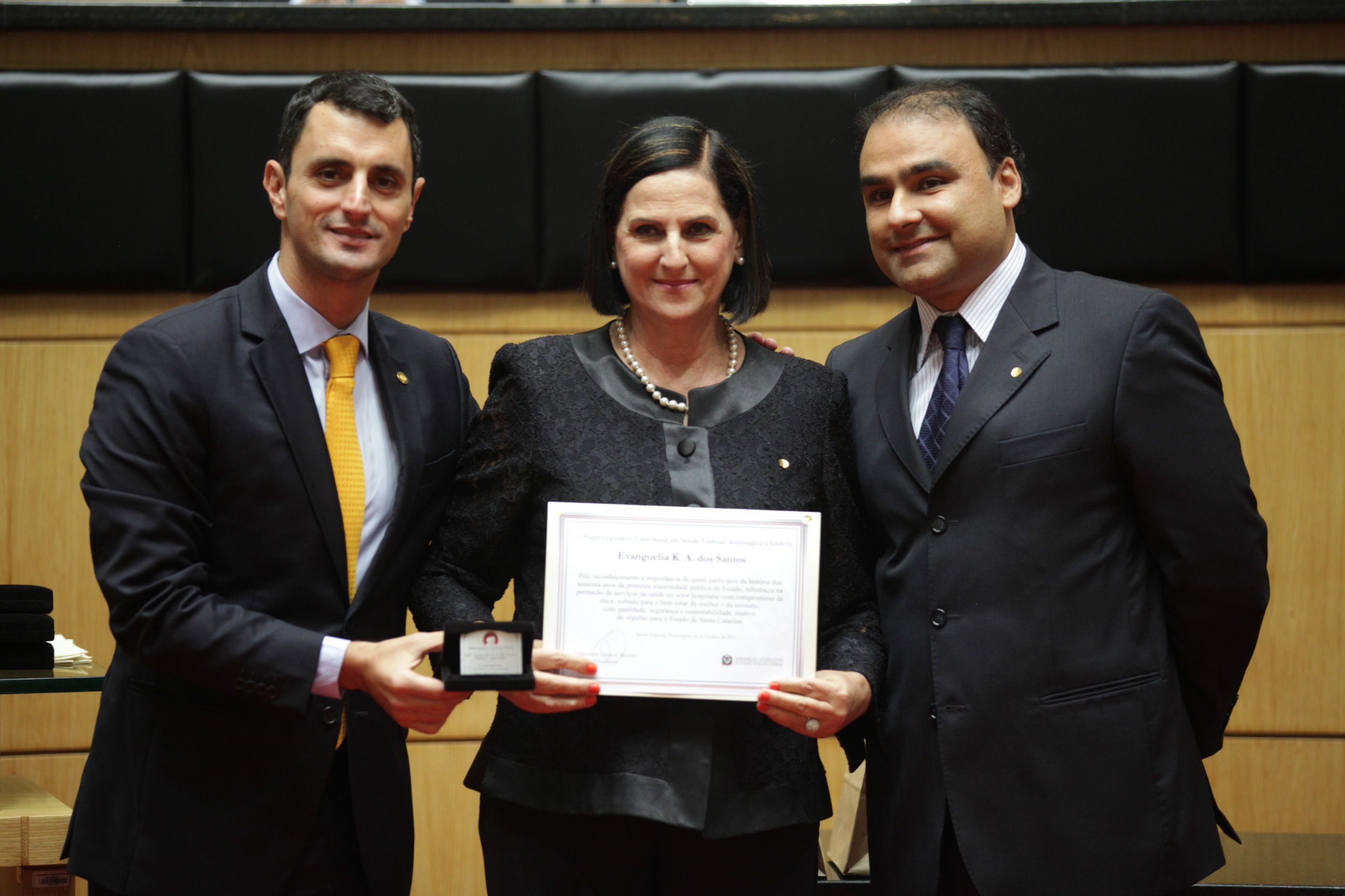 Em reconhecimento aos serviços prestados à Maternidade Carmela Dutra, a Conselheira do Conselho Regional de Enfermagem de Santa Catarina (Coren/SC) Enfermeira Dra. Evanguelia Kotzias Atherino dos Santos recebeu homenagem dos Deputados da Assembleia Legislativa de Santa Catarina (Alesc). A sessão solene, comemorativa aos 60 anos da Maternidade, foi realizada na quinta-feira (22 de outubro).