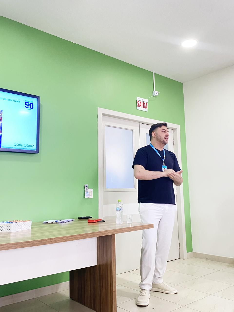 O encontro, voltado à equipe de enfermagem e demais colaboradores, contou com a presença do gerente assistencial Roberson Félix Oliveira e da enfermeira Karollyne de Moliner Menegon, responsável pelo Núcleo de Qualidade e Segurança do Paciente e pelo Núcleo de Educação Permanente.