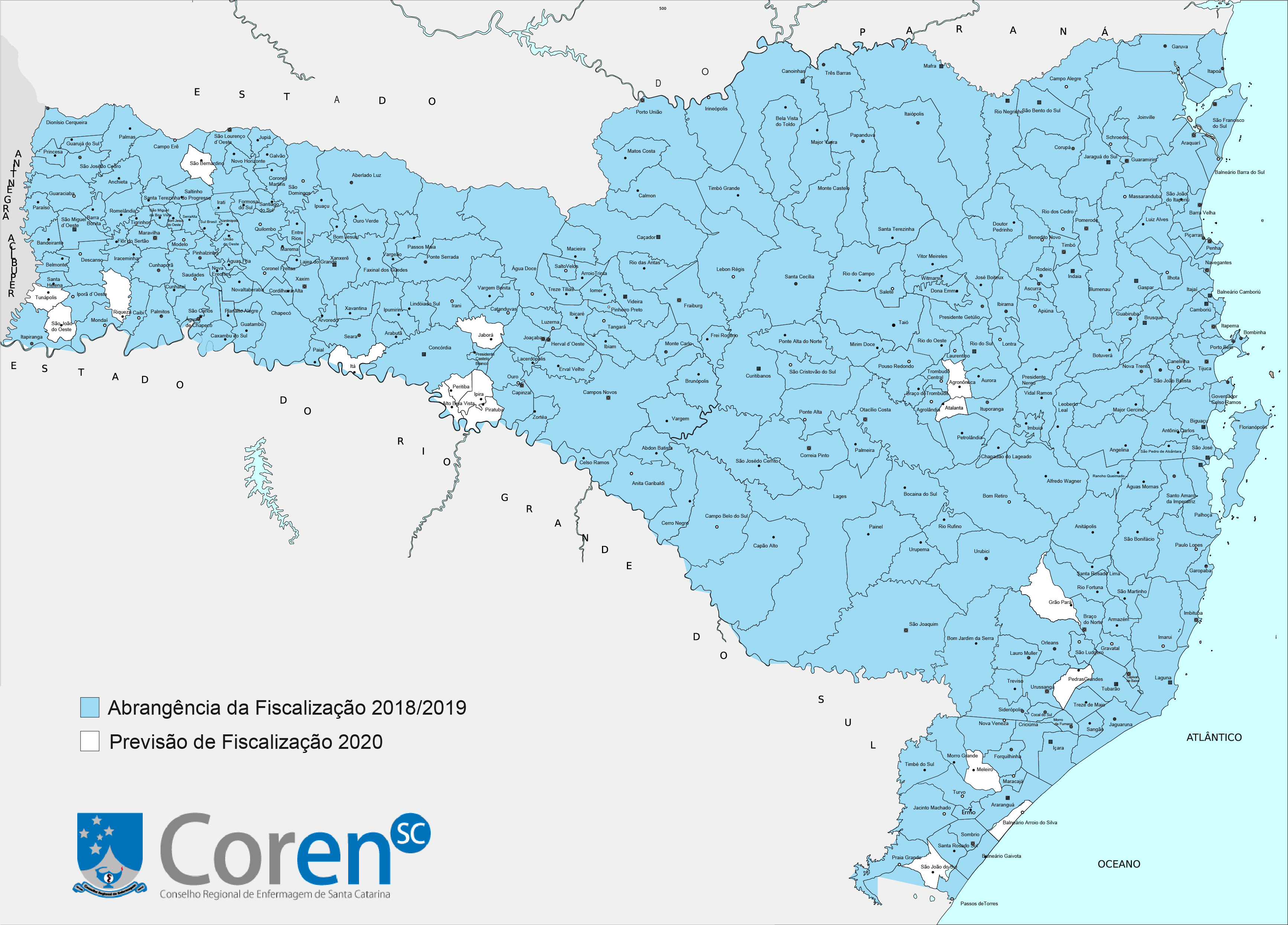 Coren/SC divulga mapa com todos os municípios fiscalizados em 2018 e 2019