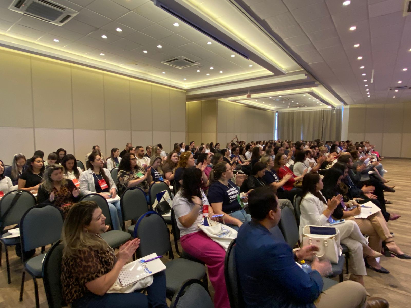 Após a cerimônia de abertura e a leitura do regulamento, os participantes acompanharam a conferência de abertura ministrada pela Enfermeira Flávia Ramos, doutora em Filosofia da Enfermagem (UFSC) e pós-doutora em Educação pela Universidade de Lisboa, que trouxe reflexões sobre ética, autonomia e o papel transformador da enfermagem na sociedade.