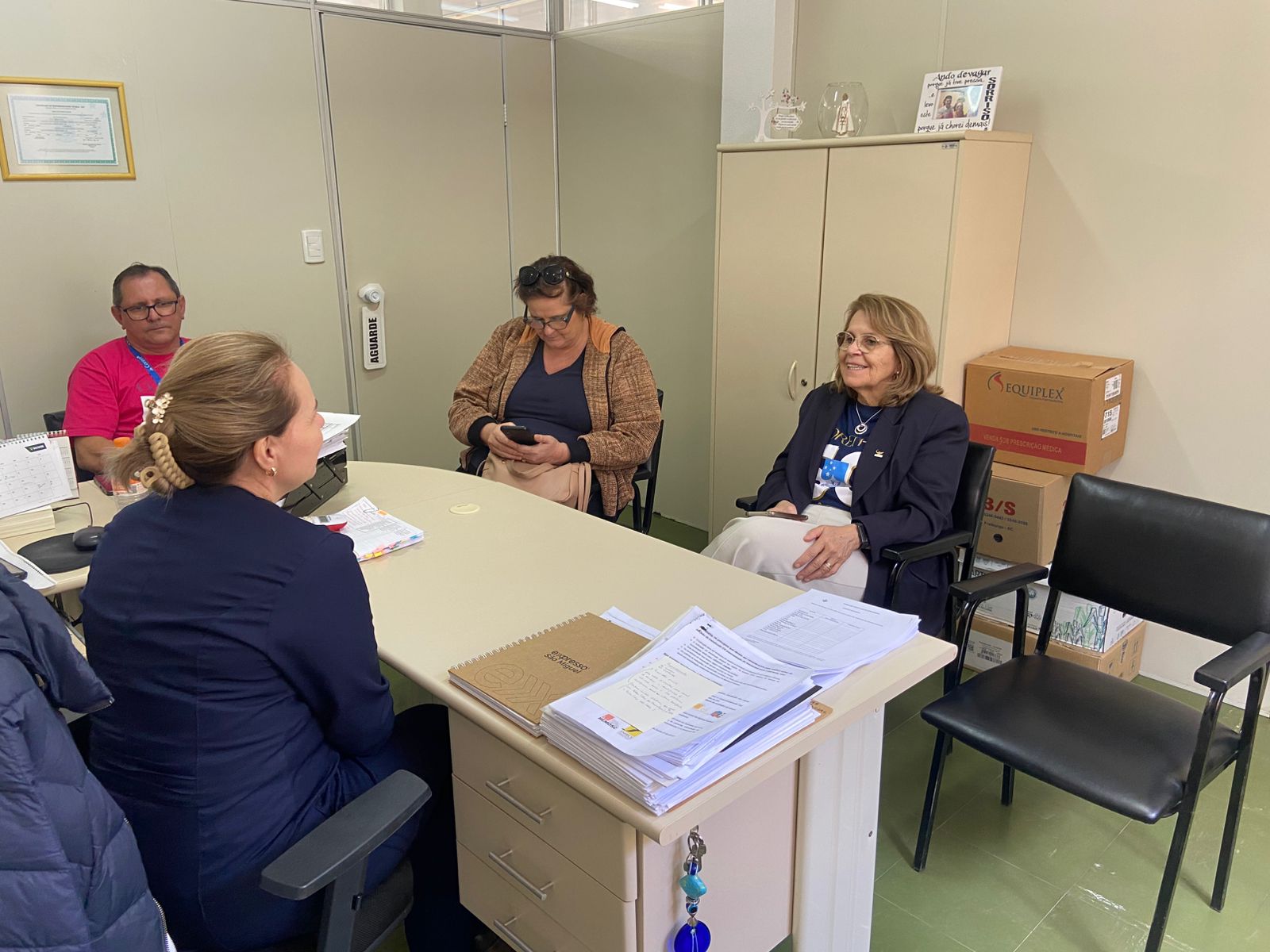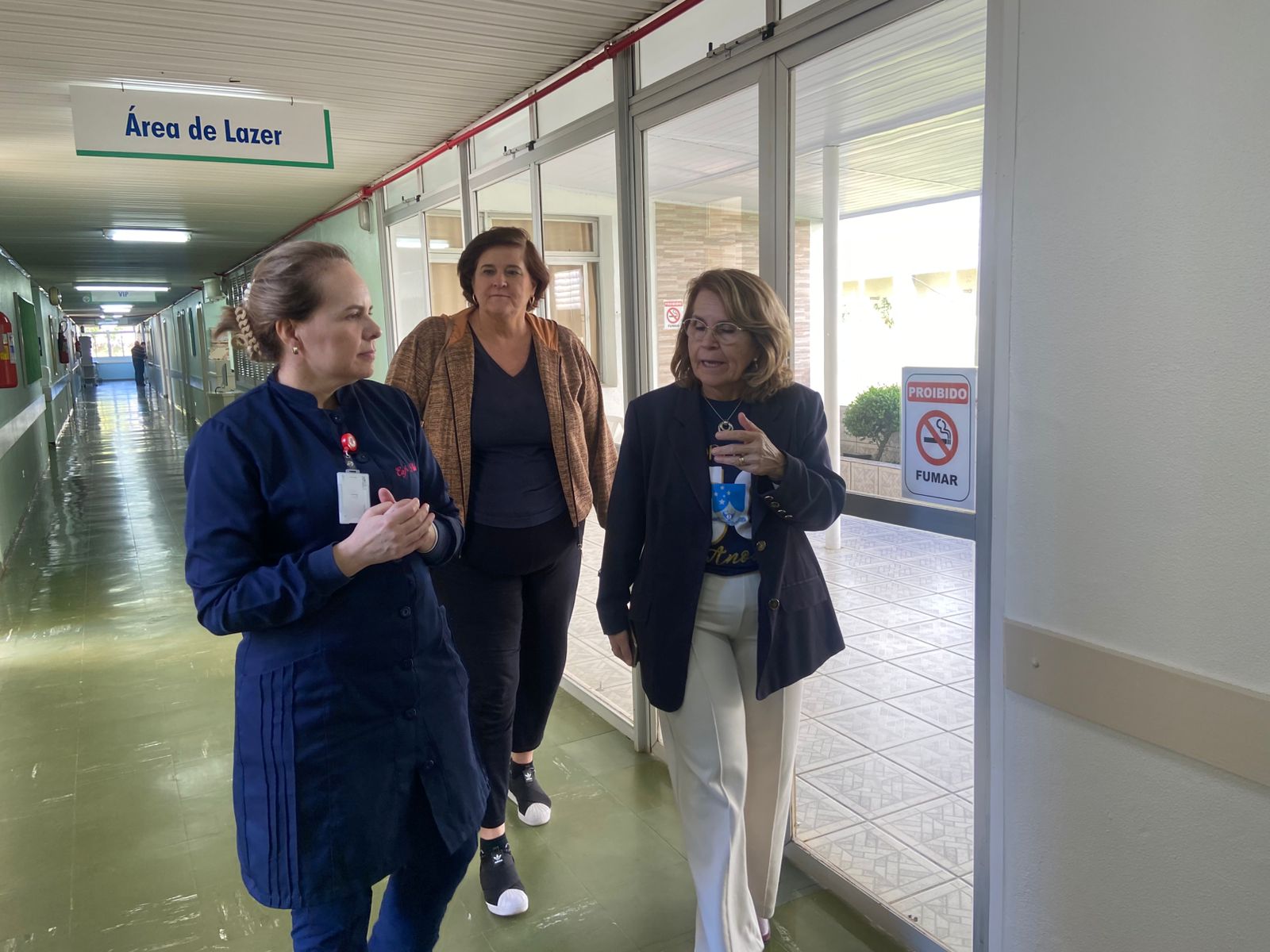 Nesta quinta feira (23), a presidente do Conselho Regional de Enfermagem de Santa Catarina (Coren-SC), Maristela Azevedo, visitou o Hospital Hélio Anjos Ortiz, em Curitibanos. Ela esteve acompanhada da segunda secretária do Conselho Federal de Enfermagem (Cofen), Helga Bresciani. A apresentação foi guiada pela enfermeira RT (Responsável Técnica) do hospital, Patrícia Ribeiro.