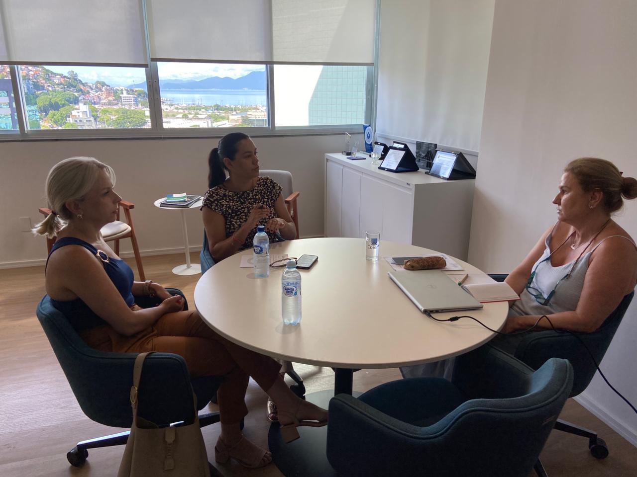 A reunião ocorreu na sede do Coren-SC, em Florianópolis, onde, além de Sandra, estiveram presentes Juliana Rodrigues de Brito Wust e Meri Aparecida Machado, respectivamente secretaria executiva e assessora técnica do Cosems-SC.