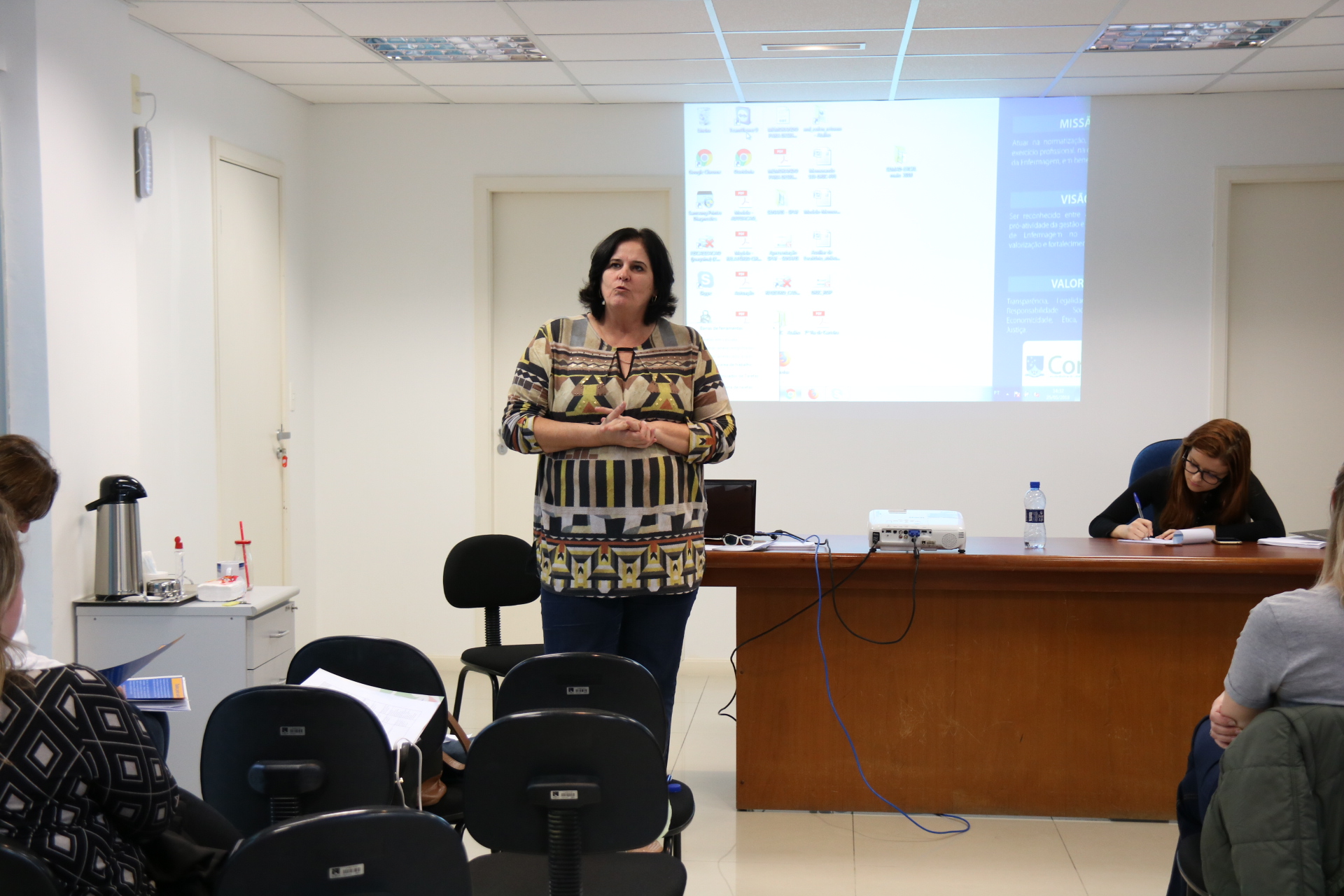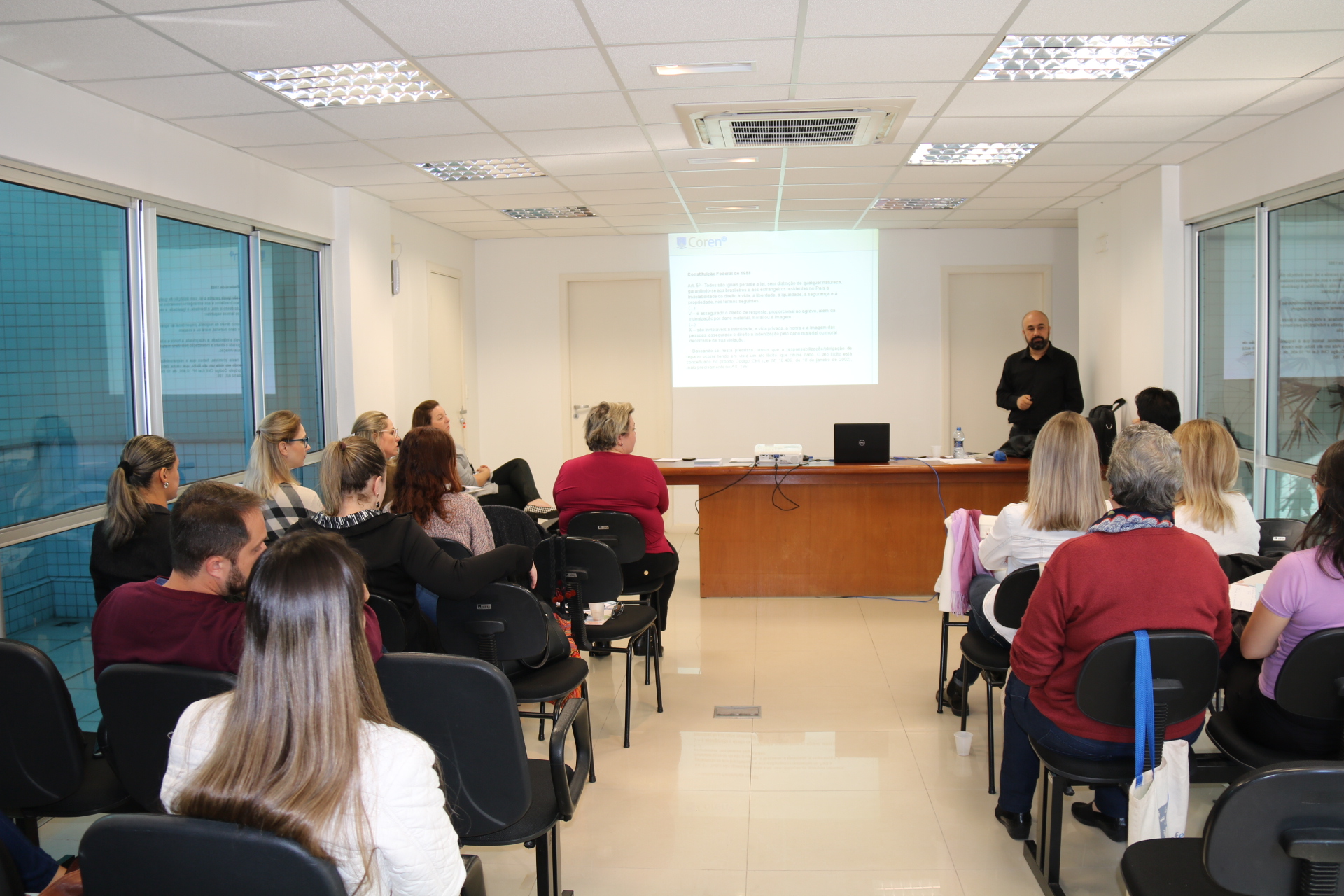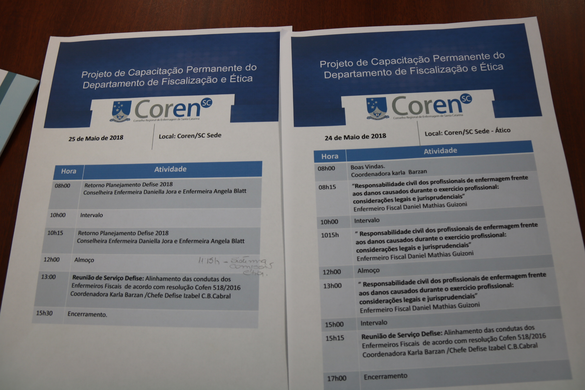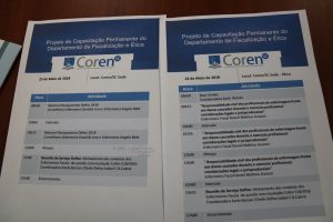 No primeiro dia foram realizadas oficinas junto com os advogados do Coren/SC para atualizações sobre a legislação e novas resoluções do Cofen. A coordenadora de atendimento ao profissional, Karla Barzan, e a chefe da Fiscalização, Izabel Bezerra Cabral, supervisionaram as atividades. O enfermeiro fiscal Daniel Ghizoni, de Blumenau, colaborou ministrando palestra sobre a Responsabilidade Civil das(os) Enfermeiras(os) e compartilhando as dúvidas que vem sendo levantadas em várias cidades nas oficinas realizadas durante a Semana de Enfermagem.