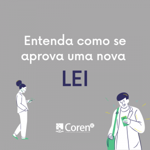 A prática da profissão de Enfermagem é regulada pela legislação brasileira, da qual o Conselho Federal de Enfermagem (Cofen) e Conselhos Regionais de Enfermagem (Coren) dos Estados são responsáveis pelo registro e fiscalização. Para a proteção e segurança desses profissionais e da sociedade, Cofen e Coren podem sugerir Projetos de Lei (PL) para adequar determinadas práticas da profissão e relações trabalhistas.