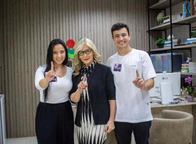Da esquerda para direita: a presidente eleita do DCE, Gabriela Minho; a reitoria da Unesc, Luciane Ceretta; e o vice-presidente eleito do DCE, Andrey Manoel.