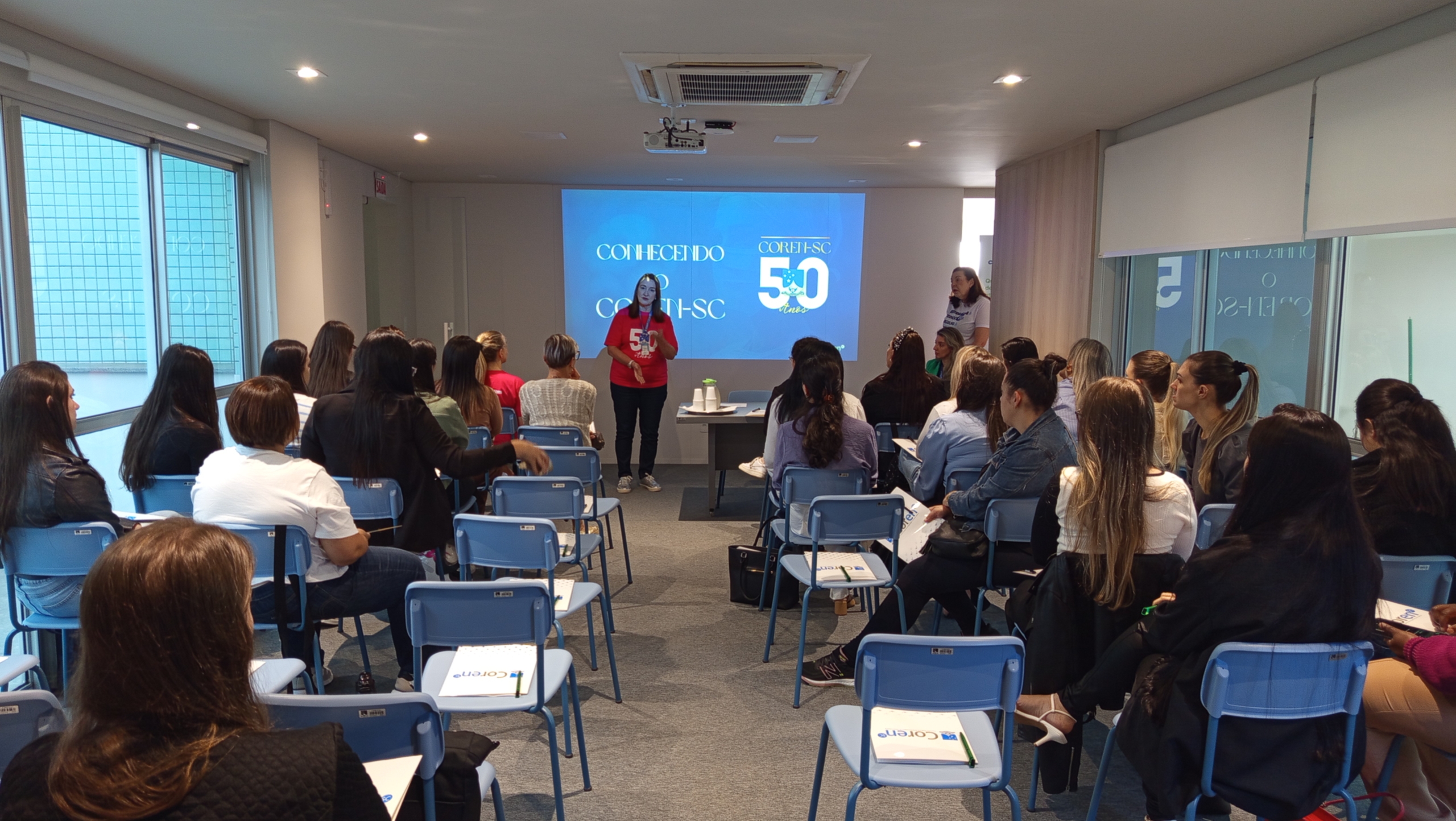O momento também contou com espaço para esclarecimento de dúvidas e troca de experiências, reforçando o compromisso do Coren-SC com a formação e o fortalecimento da Enfermagem catarinense.