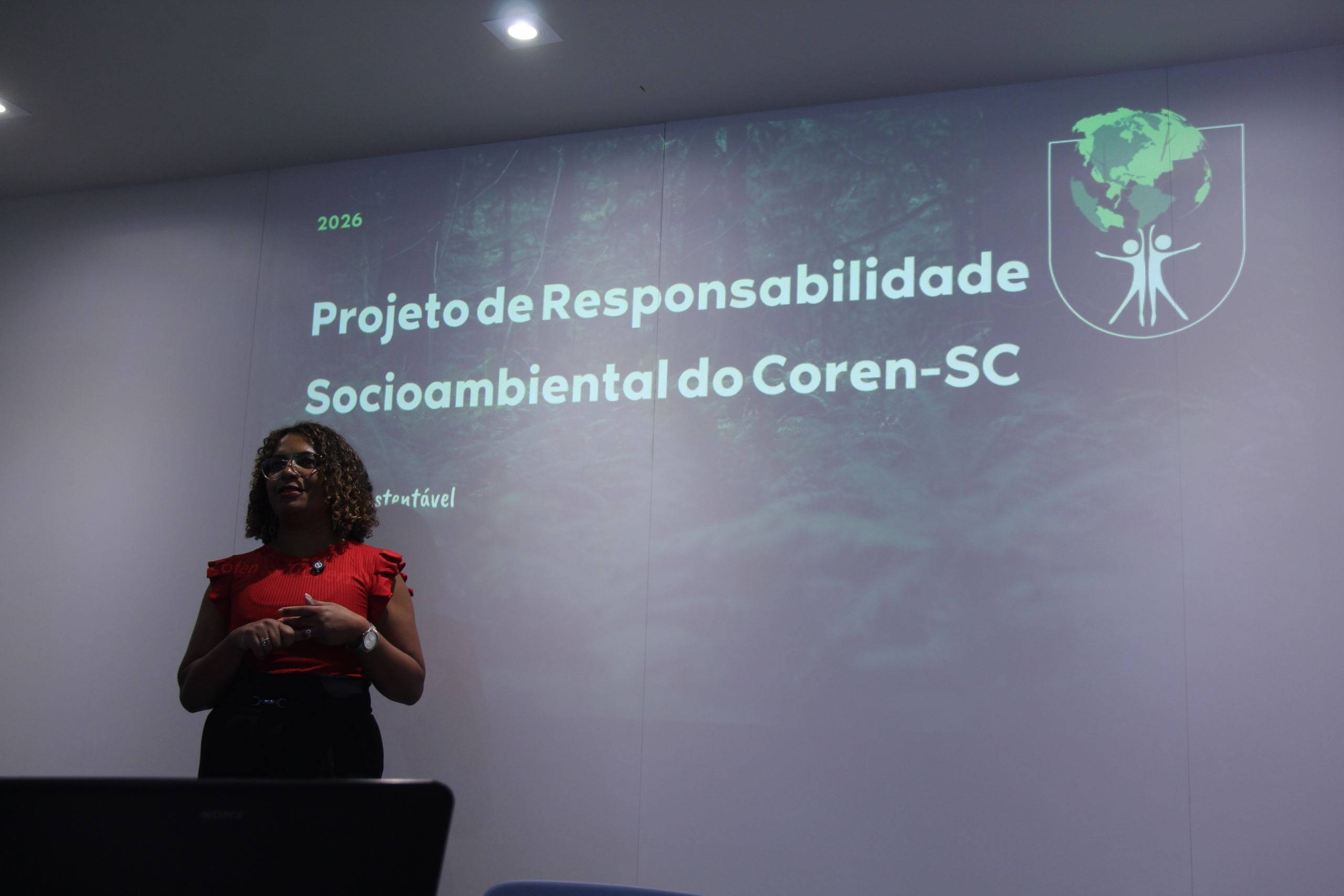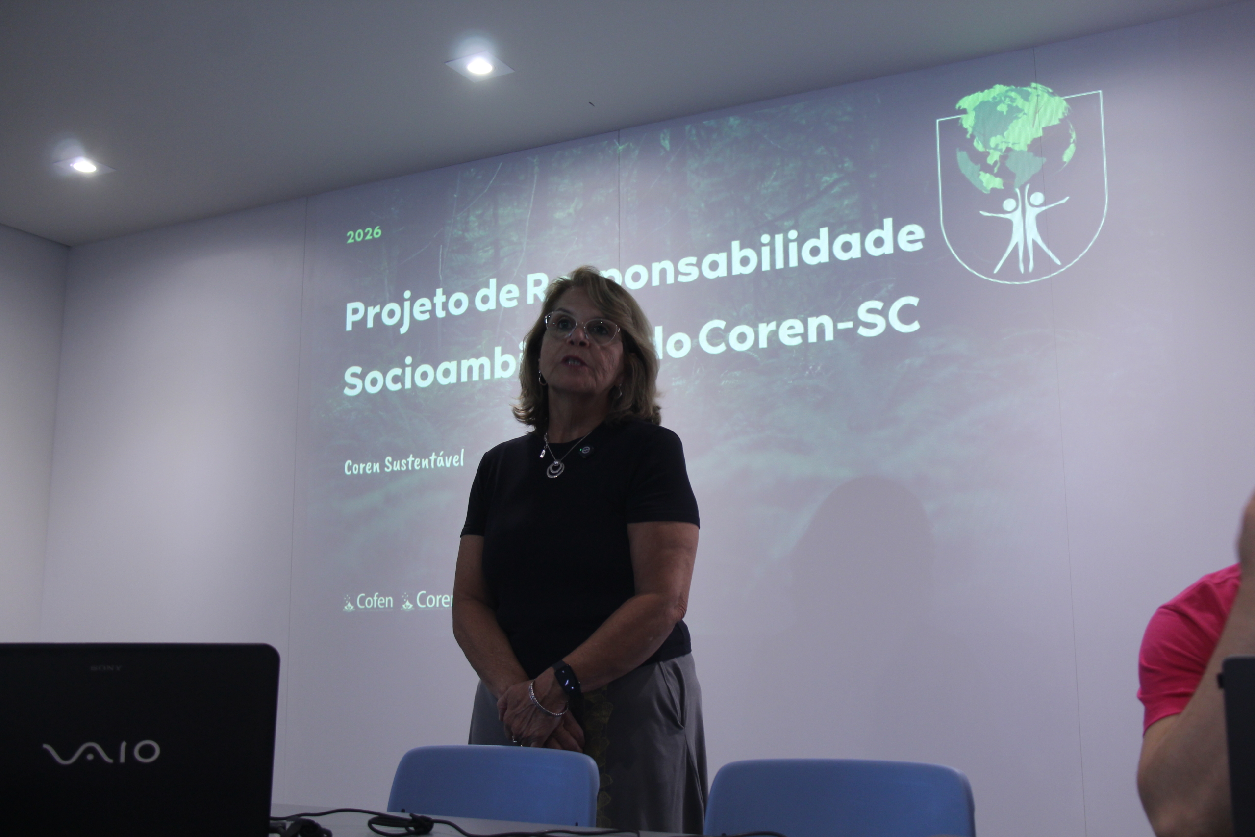 O Coren-SC Sustentável realiza ações sociais, que dialoguem com os Objetivos de Desenvolvimento Sustentável da Organização das Nações Unidas (ODS-ONU). Ele é coordenado pela auxiliar administrativa Graziela Salete de Souza e as conselheiras Gleide de Amorim e Hanele Laske. Antecedendo a palestra, Graziela apresentou uma retrospectiva das ações anteriores do grupo e Gleide explicou a agenda para o ano de 2026.