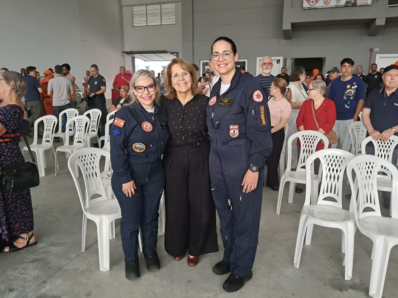 Nesta segunda-feira (6), a presidente do Conselho Regional de Enfermagem de Santa Catarina (Coren-SC), Maristela Azevedo, participou da solenidade que celebrou o 10º aniversário da 2ª Companhia do Batalhão de Operações Aéreas (BOA) do Corpo de Bombeiros Militar de Santa Catarina (CBMSC), realizada no Aeroporto Regional de Blumenau, hangar 02 da FlyJet.