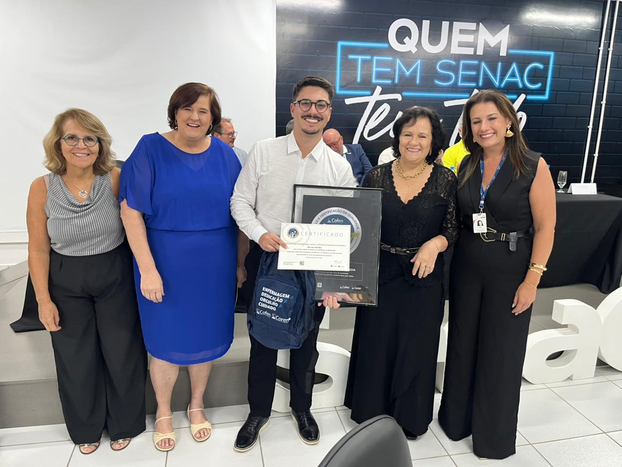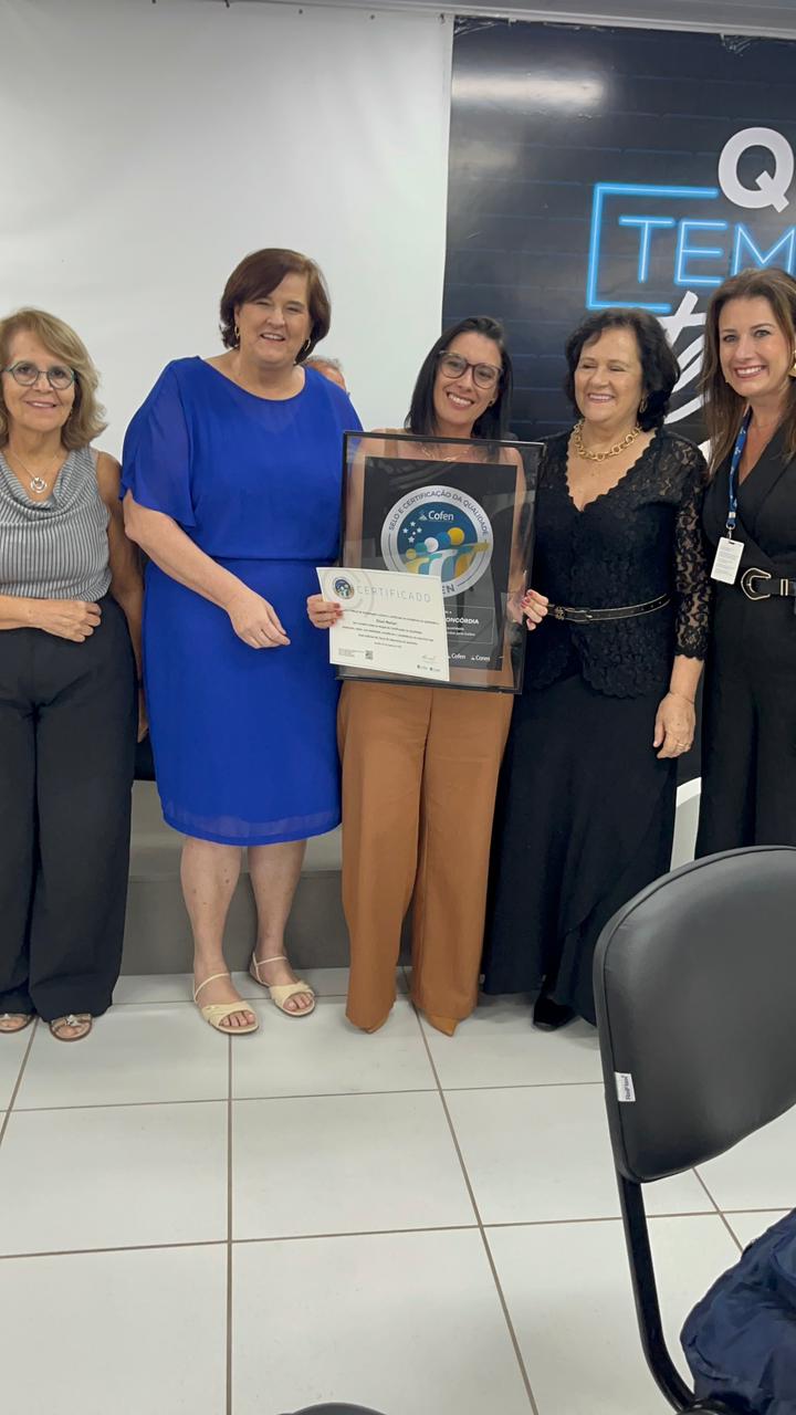 O Conselho Regional de Enfermagem de Santa Catarina (Coren-SC), em parceria com o Conselho Federal de Enfermagem (Cofen), participou nesta quinta-feira, 5 de fevereiro, da solenidade de entrega do Selo de Qualidade Cofen ao Senac Concórdia. A certificação é concedida pelo Cofen e reconhece instituições de ensino que se destacam pela excelência na formação profissional em Enfermagem, com base em critérios rigorosos de qualidade pedagógica, ética profissional e compromisso com a qualificação dos futuros profissionais.